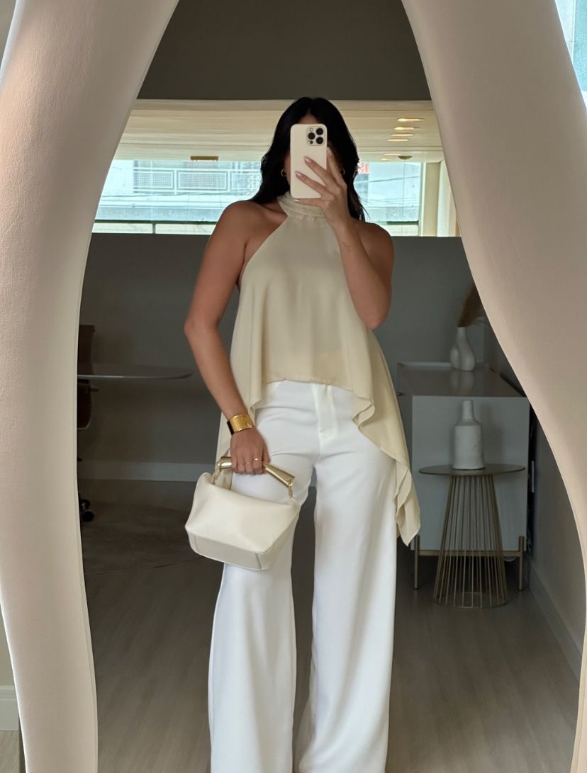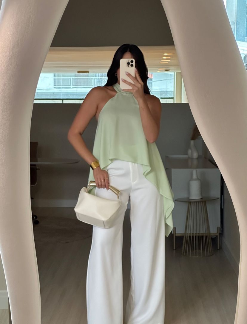 Confeccionado en crepe chiffon. La blusa coquette , modelo frente única, con cuello alto y detalles drapeados que le aportan un toque de elegancia. Su diferencial está en el ruedo asimétrico, con movimiento fluido. Su cierre es en el cuello con dos botones que garantizan un ajuste perfecto y un acabado impecable. Posee tejido doble en la parte frontal. Ideal para crear looks sofisticados, esta blusa es una opción versátil y llena de encanto para ocasiones especiales o para transformar el look del día a día.